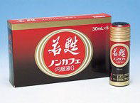 | 若甦ノンカフェ内服液G | ●カフェインが気になる身体の冷えやすい方の滋養強壮に ●薬用人参に動物生薬の牛黄、ビタミンE、B群などを配合。 身体の代謝を盛んにして栄養を補給し、体力をつける滋養強壮剤です。 ●カフェインに弱い人や、風邪の時など、寝る前の服用もOKです。 効能・効果 滋養強壮、虚弱体質、肉体疲労、発熱性消耗性疾患、病中病後、胃腸障害、栄養障害、産前産後などの場合の栄養補給。 |