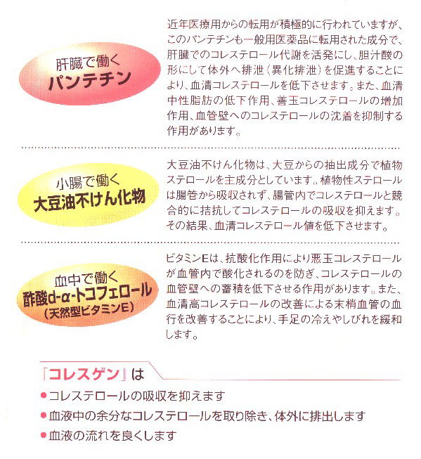 摂取されたコレステロールの代謝を促進し、血中の余分なコレステロールを除く働きのある「パンテチン」を配合しました。